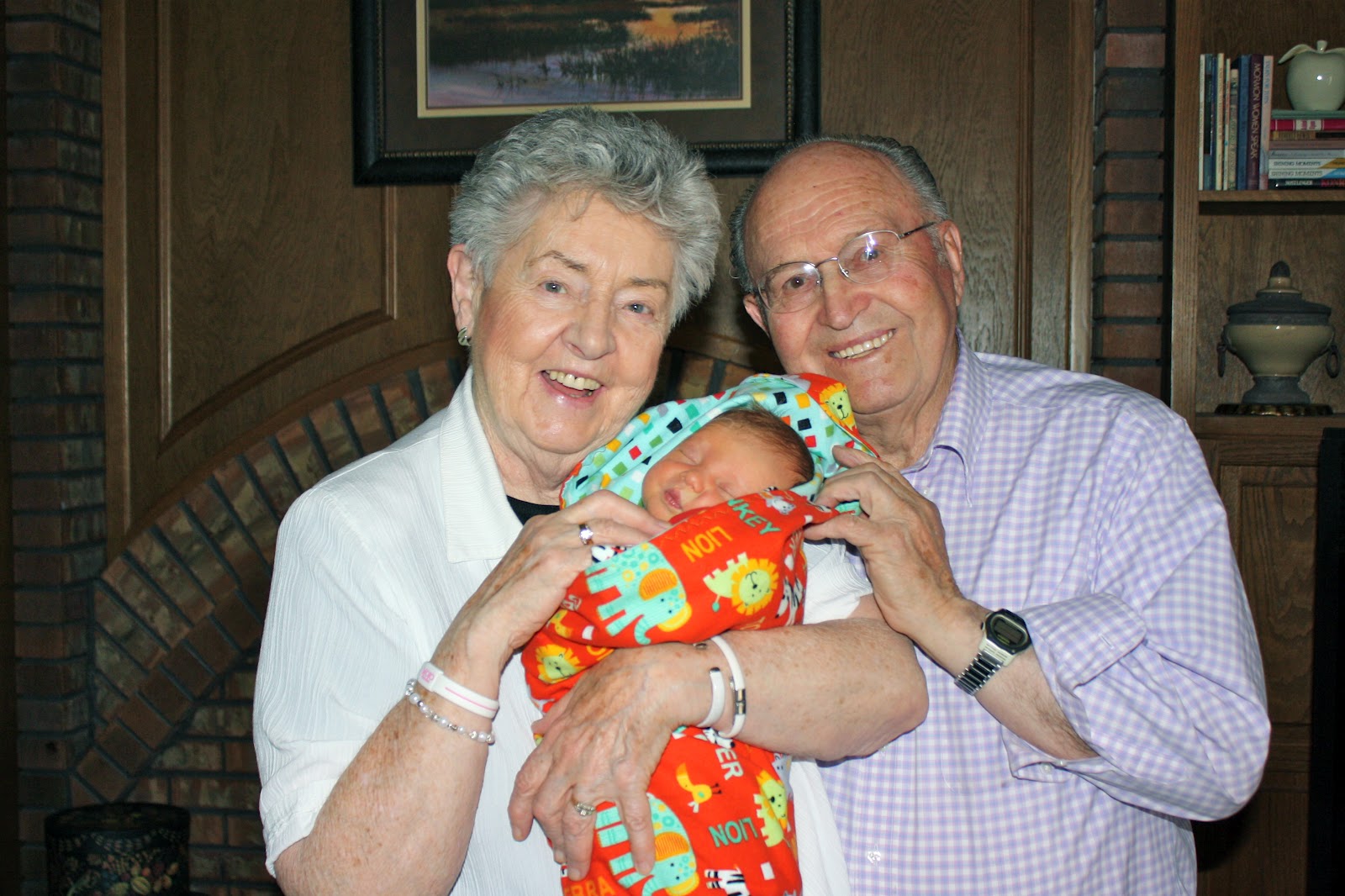Jackson was visited by his great grandparents the other day. They were in town for some graduations and stopped by to see him. These are Justin's grandparents and they live in Star Valley, right by his parents. It was nice of them to come by!